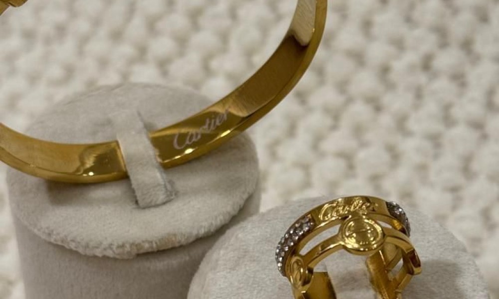 سوار مع خاتم ماركة كارتيرلون ذهبي سادةمقاس 8..